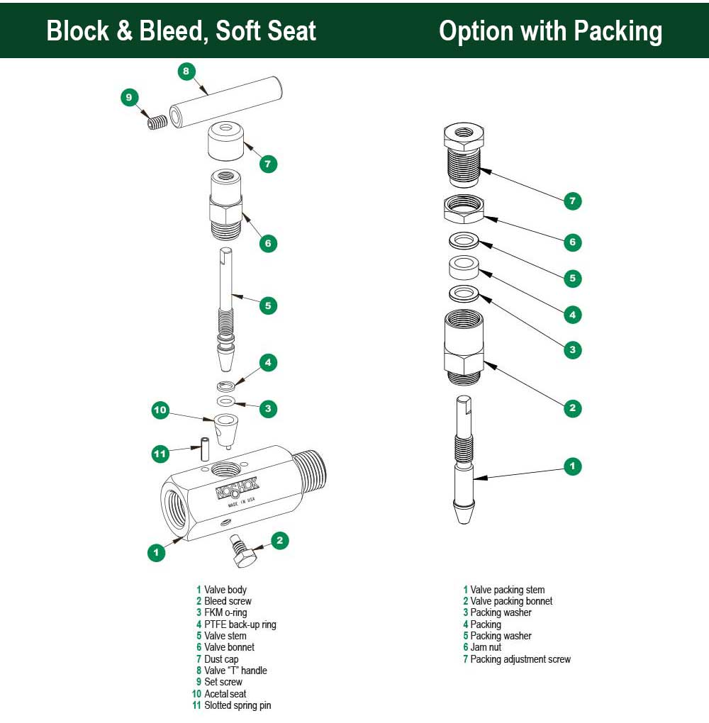 - Block & bleed design allows pressure to be bled off without disturbing the permanent piping installation, allowing quick and easy removal or replacement of instruments
